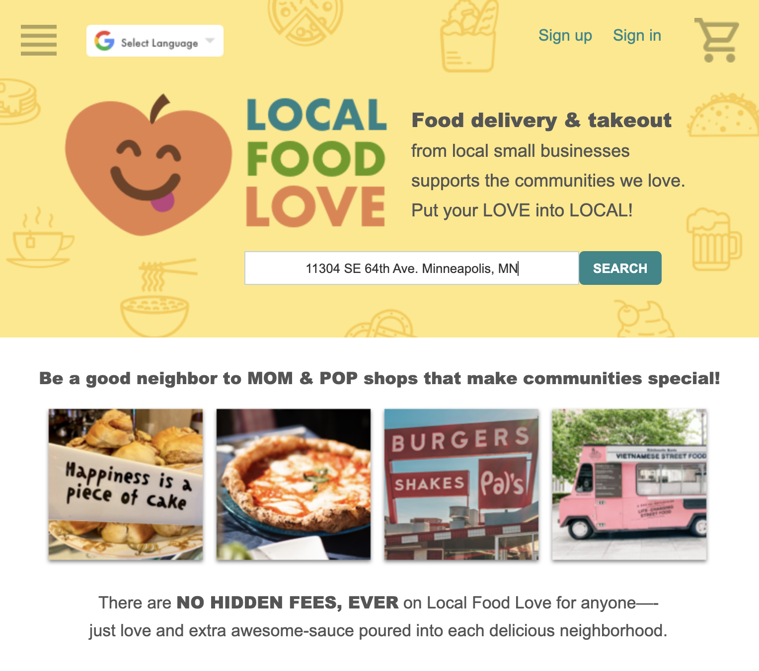 Creating an online community-centered food delivery/takeout platform with friendly branding, prototyping, and usability testing