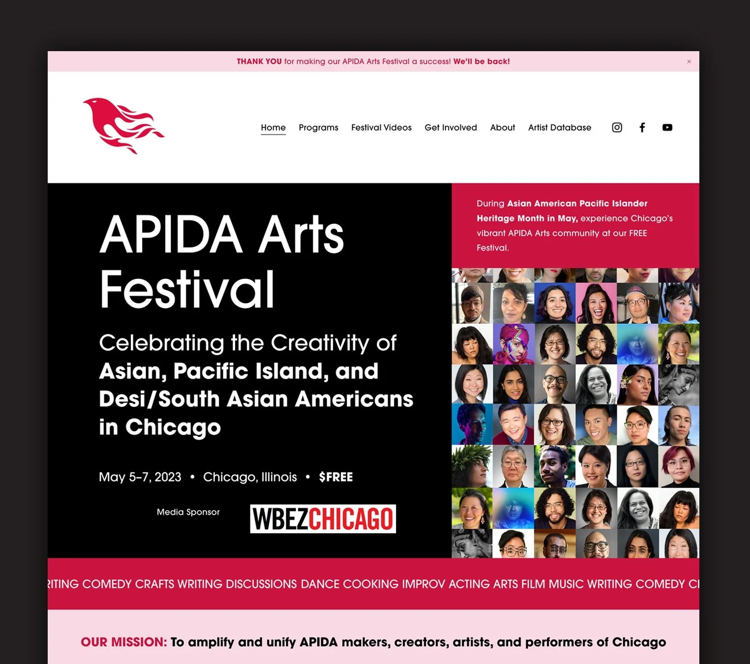 UX design/research, visual design, and content editing to create the inaugural site for the largest APIDA Arts Festival in Chicago